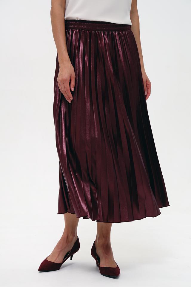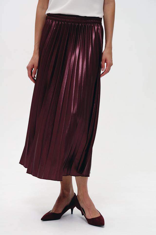 Бордовая плиссированная юбка от Lecomte – элегантная модель длиной миди с удобной резинкой на талии. Идеально подходит для создания стильных образов, сочетая в себе комфорт и изысканность. Состав: полиэстер 100%