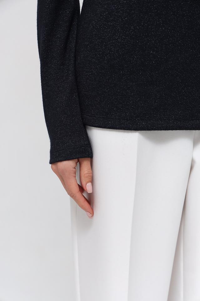 Чёрный пуловер Lecomte с добавлением мерцающей металлической нити станет стильным дополнением к вашему гардеробу. Модель выполнена из мягкой вискозы с эластаном, что обеспечивает комфорт и хорошую посадку по фигуре. Состав: вискоза 70%, метализ.нить 25%, эластан 5%