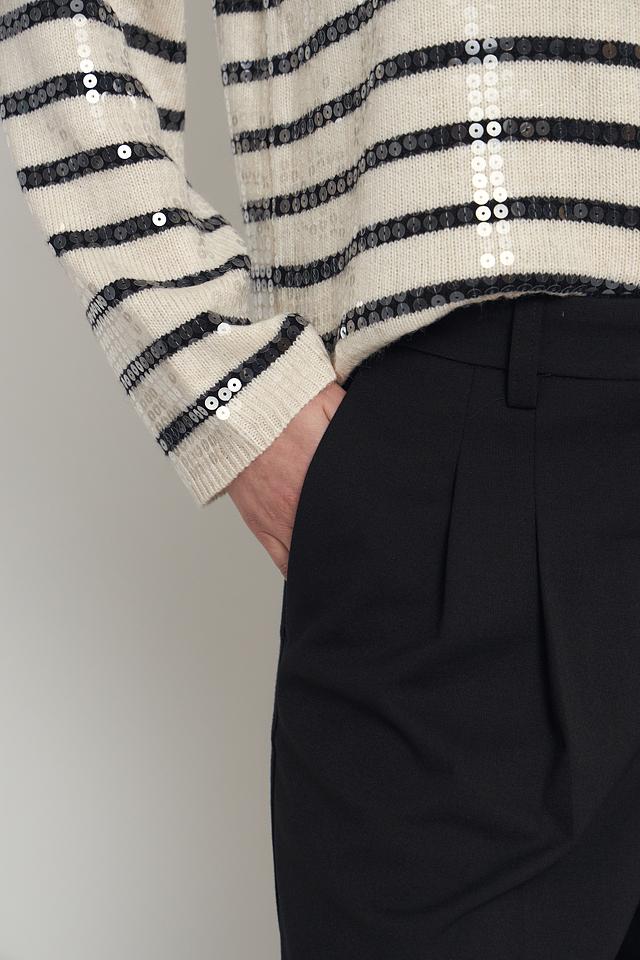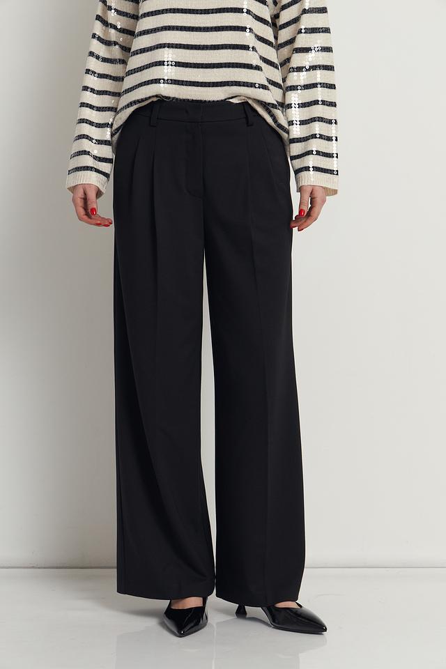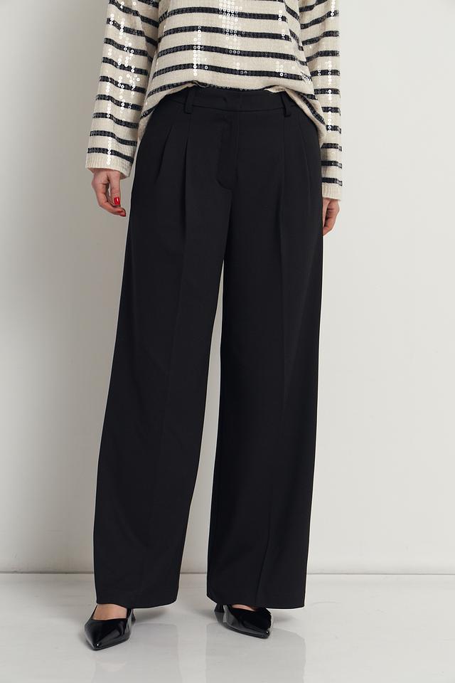 Представляем стильные брюки от бренда Lecomte. Эта модель выполнена в классическом чёрном цвете, который легко сочетается с любым верхом.