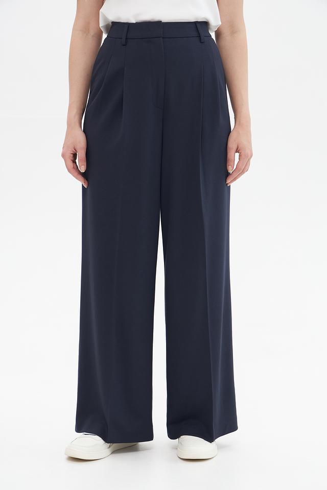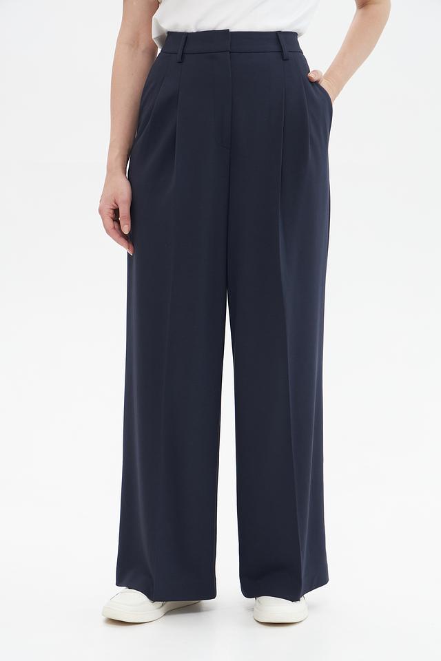 Женские брюки палаццо от Lecomte классического темно-синего цвета. Выполнены из вискозы с добавлением полиэстера и эластана для комфорта и хорошей посадки. Состав: вискоза 72%, полиэстер 23%, эластан 5%
