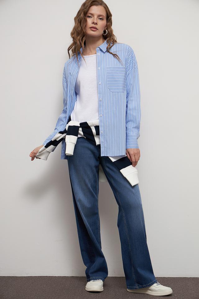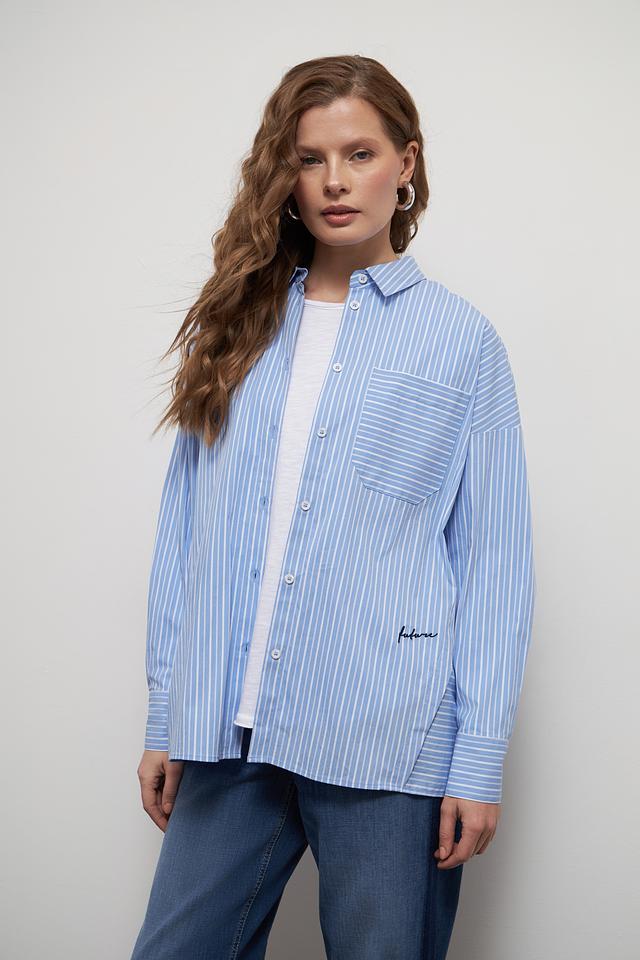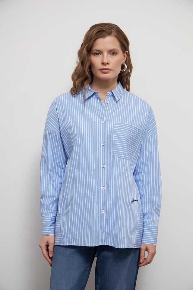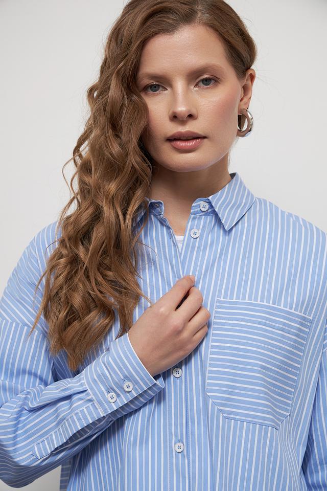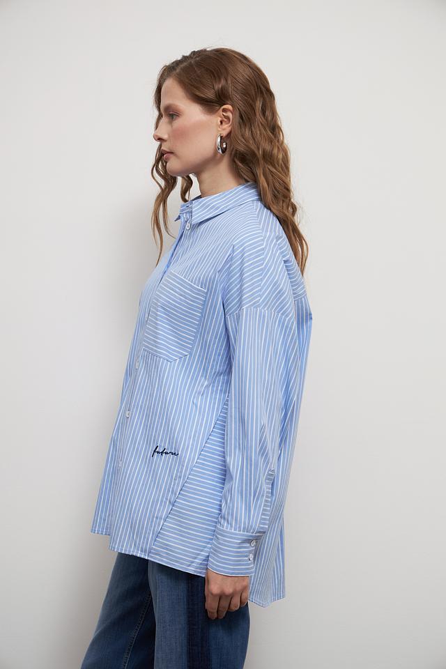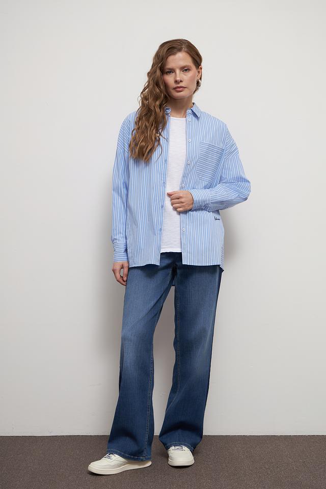 Голубая рубашка Lecomte в полоску – стильный и универсальный элемент гардероба. Выполнена в свободном крое с длинными рукавами и накладными карманами. Идеально сочетается с джинсами и брюками. Состав: хлопок 81%, полиамид 16%, эластан 3%