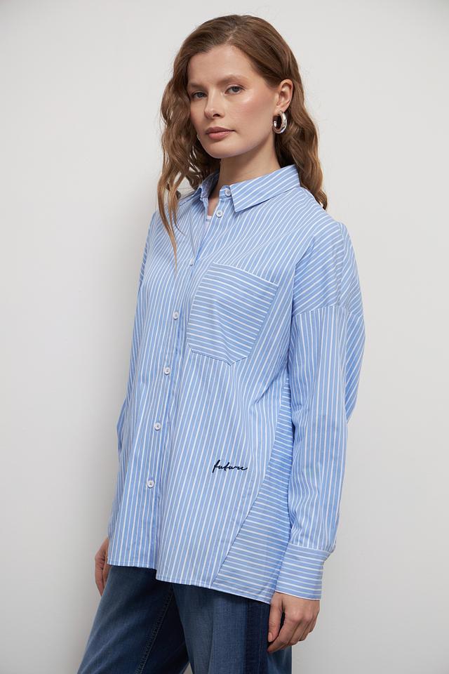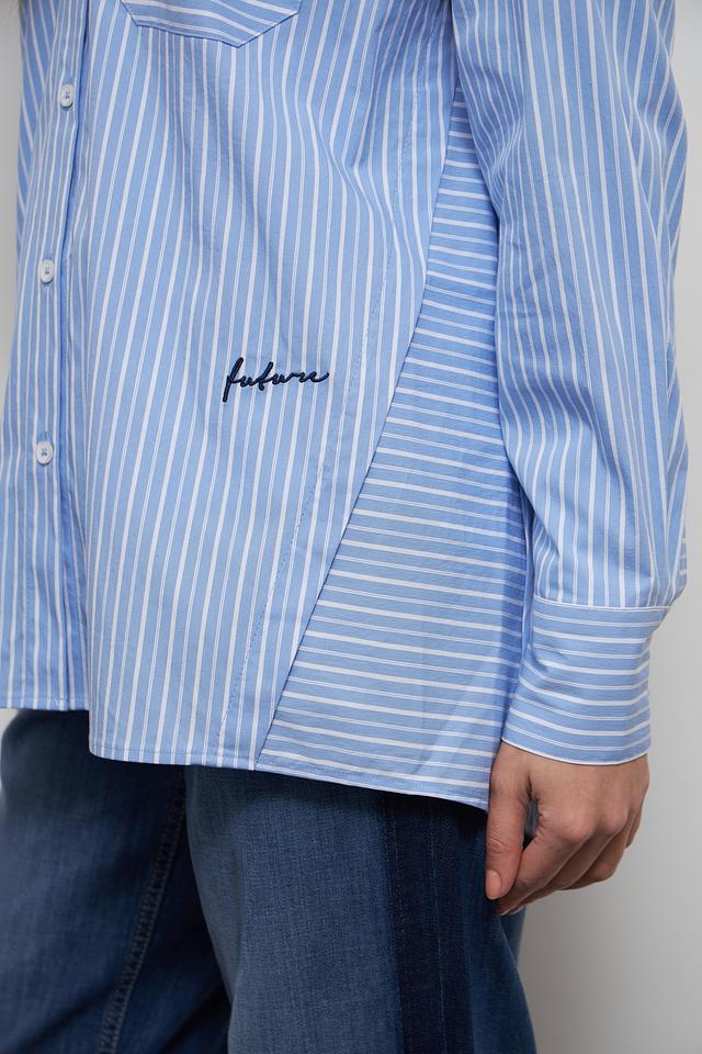 На передней части рубашки расположены два накладных кармана, которые добавляют ей функциональности и стиля. Небольшая вышивка с логотипом бренда "future" придает изделию индивидуальность.
