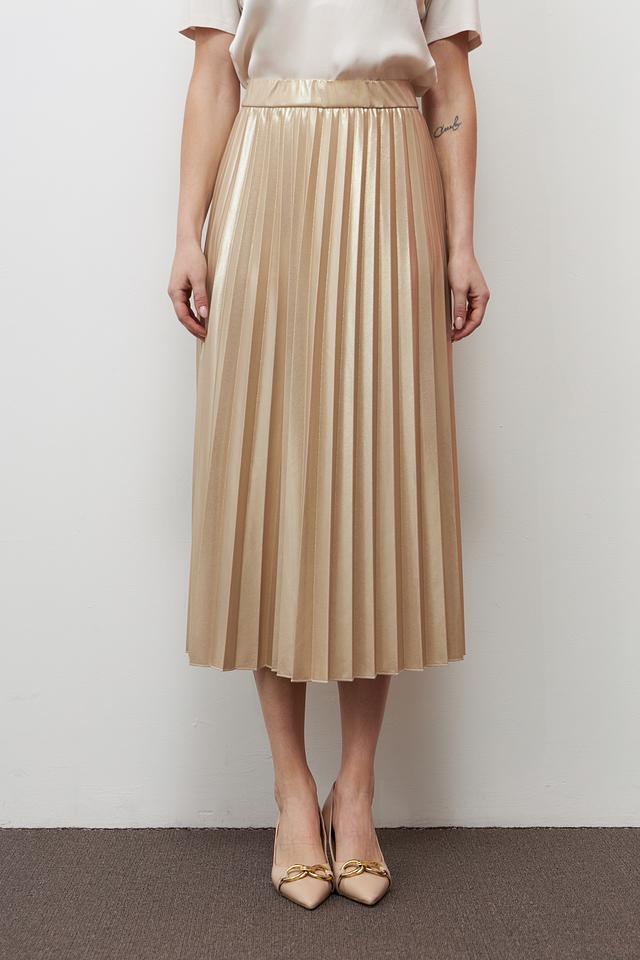Юбка Lecomte золотистого цвета – это стильная плиссированная модель длиной миди. Изготовлена из 100% полиэстера, обеспечивающего лёгкость и комфорт в носке. Идеально дополнит ваш повседневный или вечерний образ. Состав: полиэстер 100%