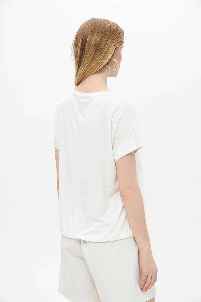 Белая блуза Lecomte из вискозы с выраженной текстурой. Модель свободного кроя с короткими рукавами и округлым вырезом горловины. Состав: 96% вискоза, 4% эластан. Состав: вискоза 96%, эластан 4%