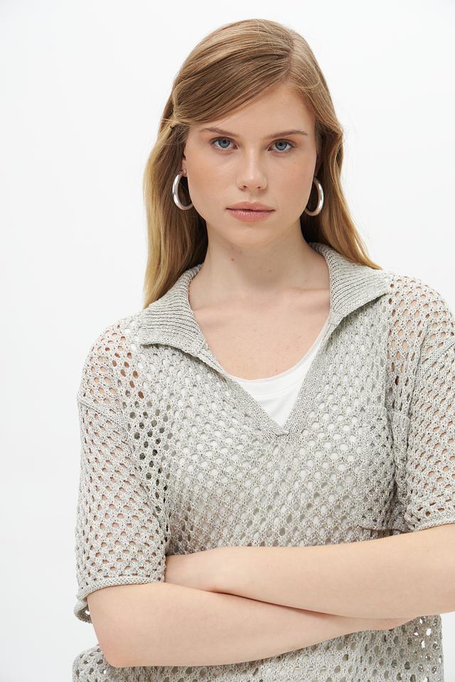 Модель имеет V-образный вырез и короткие рукава, что обеспечивает комфорт и свободу движений. Пуловер отлично сочетается с шортами, юбками или брюками, создавая стильный и непринужденный образ.