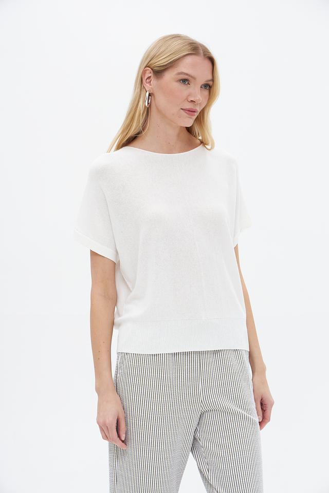 Модель имеет округлый вырез горловины и короткие рукава, что делает ее идеальным выбором для теплой погоды. Пуловер выполнен из высококачественной вискозы (88%) с добавлением полиэстера (12%), что обеспечивает мягкость, комфорт и хорошую посадку по фигуре.