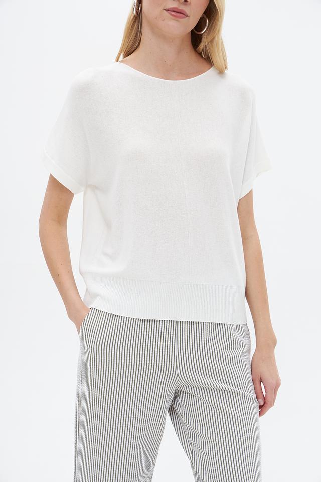 Белый пуловер от Lecomte — это стильная и комфортная модель с короткими рукавами и округлым вырезом. Изготовлен из мягкой вискозы с добавлением полиэстера, обеспечивающей приятные тактильные ощущения и хорошую форму. Состав: вискоза 88%, полиэстер 12%