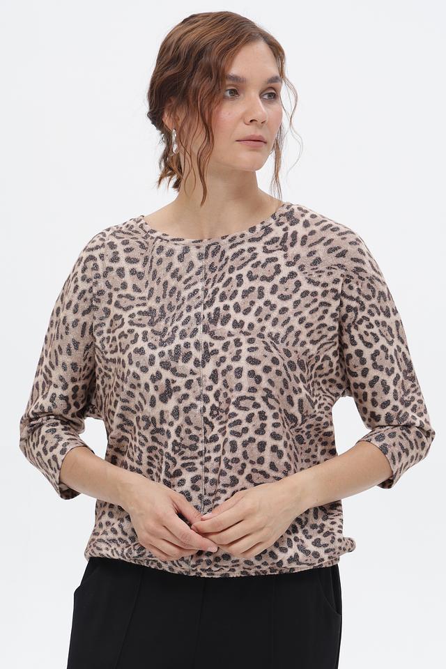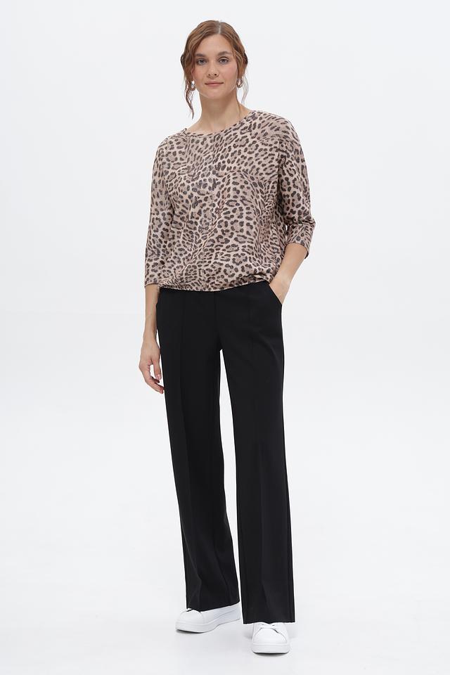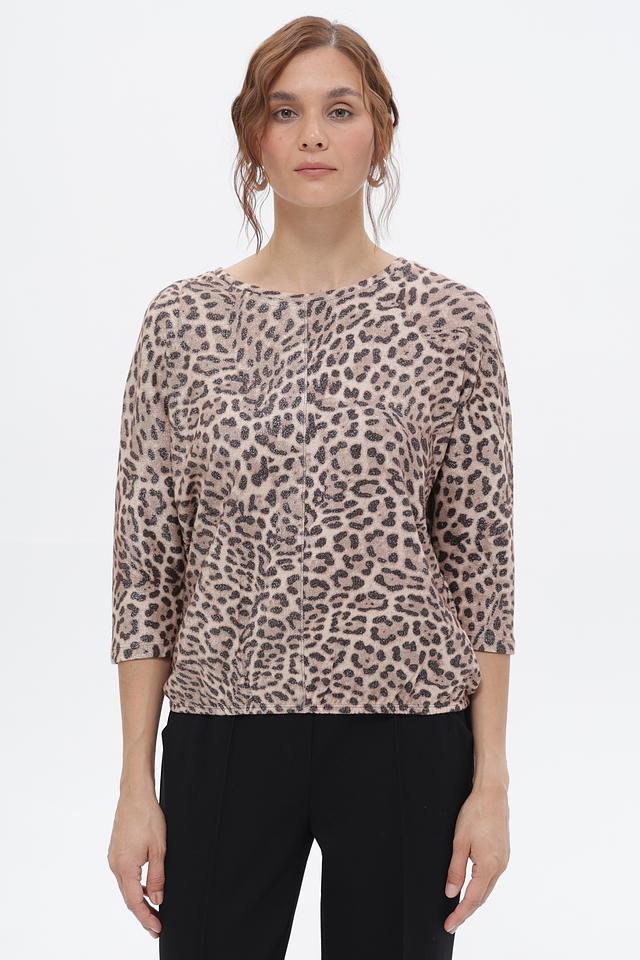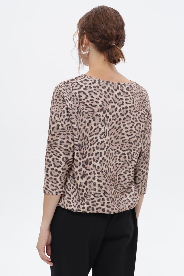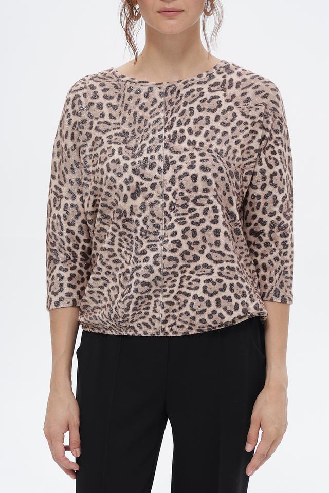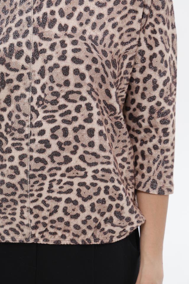 Женский пуловер Lecomte бежевого цвета с леопардовым принтом. Изготовлен из мягкой вискозы с добавлением полиамида и полиэстера, обеспечивающих комфорт и износостойкость. Состав: вискоза 40%, полиамид 26%, полиэстер 24%, метализ.нить 10%