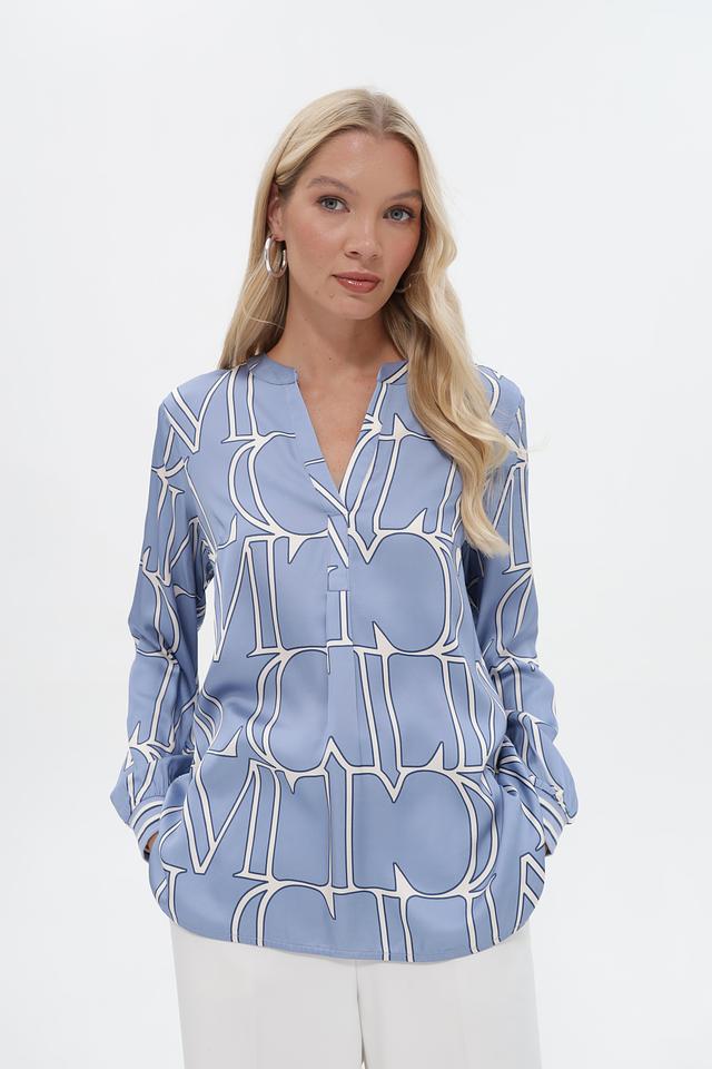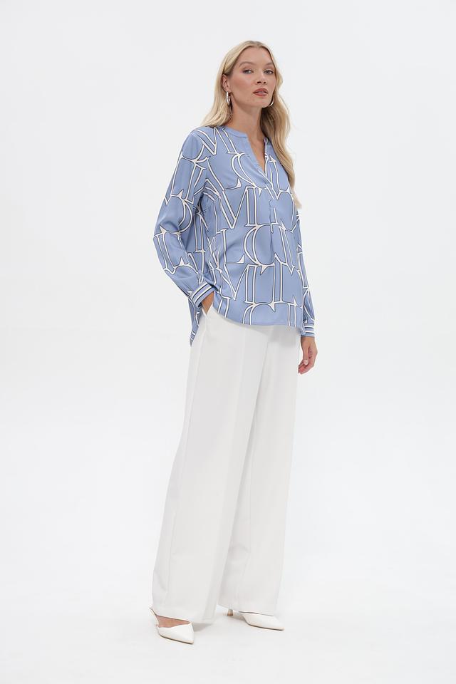 Эта блузка от бренда Lecomte выполнена в приятном голубом цвете и украшена стильным белым принтом, состоящим из повторяющихся логотипов бренда. Модель имеет свободный крой, который не сковывает движений и обеспечивает комфорт в течение всего дня.