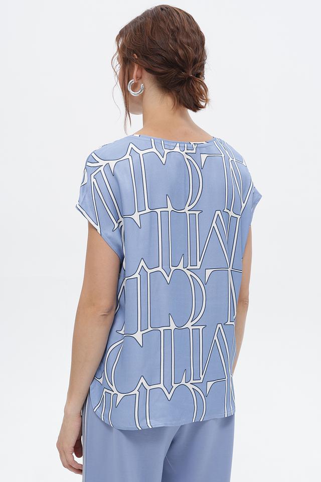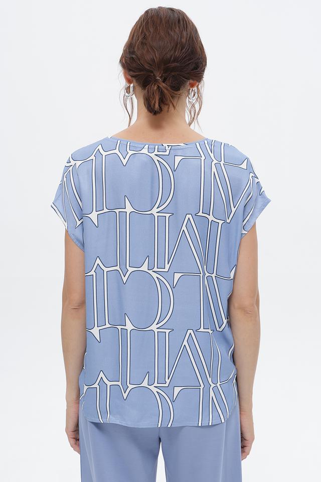 Голубая блуза Lecomte с оригинальным принтом – стильное решение для создания яркого образа. Модель свободного кроя из 100% вискозы обеспечит комфорт в течение дня. Состав: вискоза 100%
