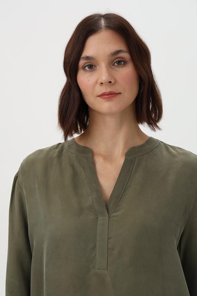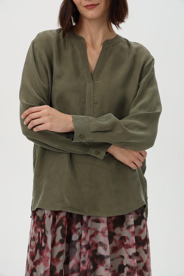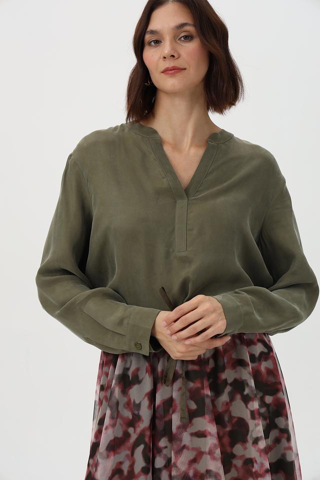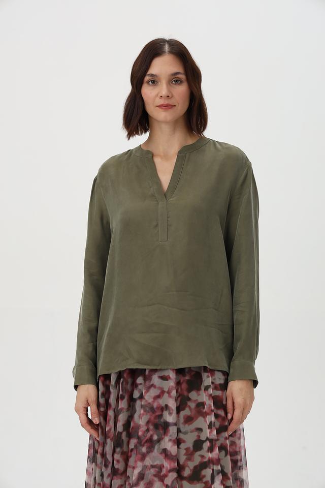 Блузка Lecomte оливковая с V-образным вырезом