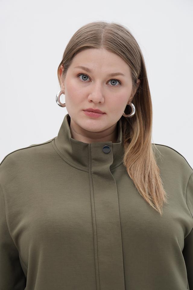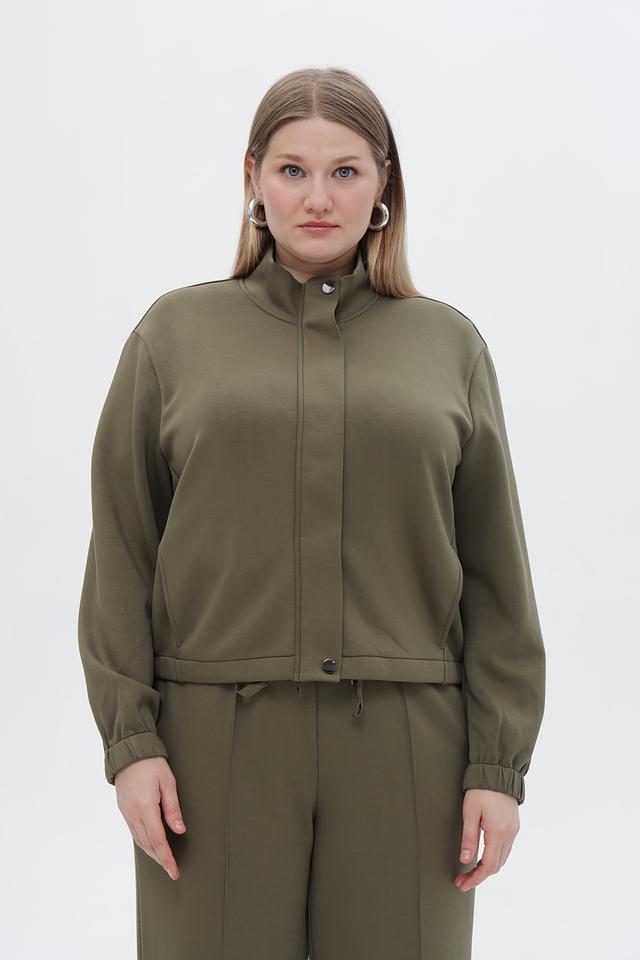 Воротник-стойка придает жакету современный вид, а манжеты на резинке обеспечивают плотное прилегание к запястьям. Жакет имеет длинные рукава и удобную длину.