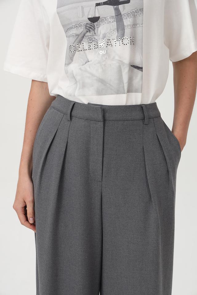 Представляем брюки клёш от бренда Lecomte. Эта модель выполнена в классическом сером цвете и станет отличным дополнением к вашему гардеробу.