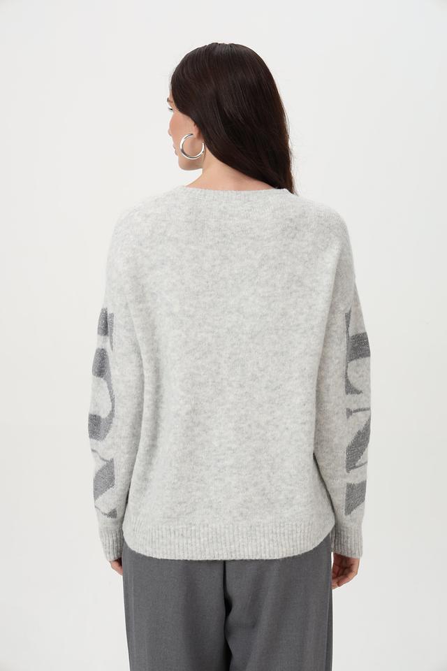 Серый пуловер Lecomte с надписью и пайетками – стильная и уютная модель на каждый день. Изготовлен из мягкой смеси шерсти, альпаки и вискозы для комфорта и тепла. Идеально сочетается с брюками и юбками. Состав: полиакрил 38%, полиамид 29%, полиэстер 9%, шерсть 8%, альпака 8%, вискоза 5%, эластан 3%