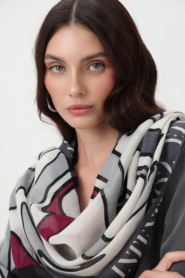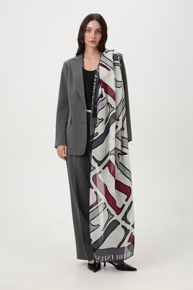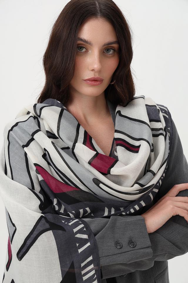 Этот шарф от Lecomte – отличный способ добавить изюминку в ваш повседневный или вечерний образ. Шарф выполнен в серой цветовой гамме с ярким абстрактным рисунком, сочетающим в себе оттенки белого, бордового и чёрного.