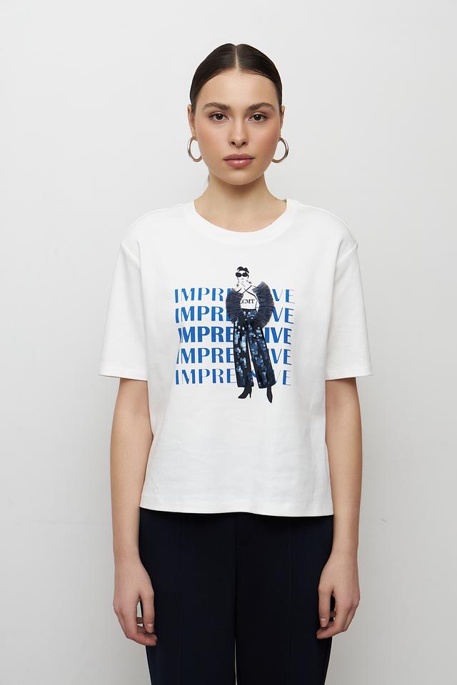 Белая футболка Lecomte с оригинальным принтом — стильная и комфортная базовая вещь из 100% хлопка. Прямой крой и короткие рукава делают эту футболку идеальным выбором для повседневного образа. Состав: хлопок 100%