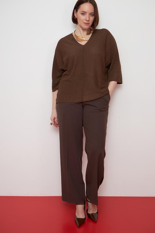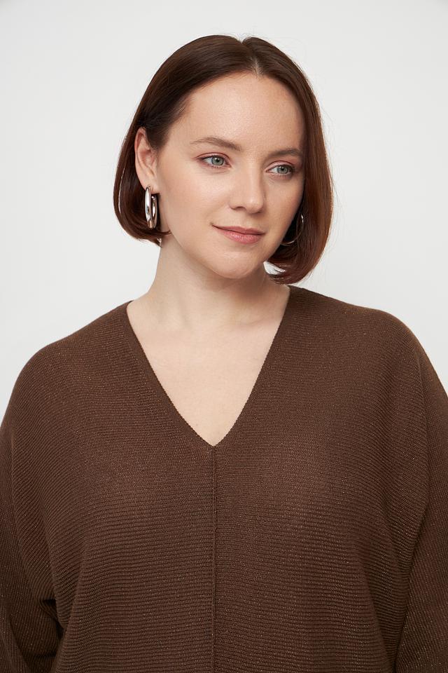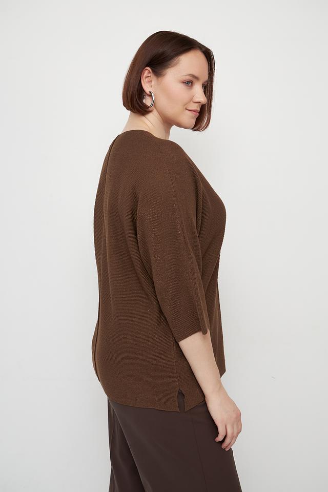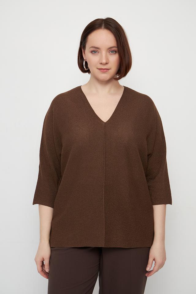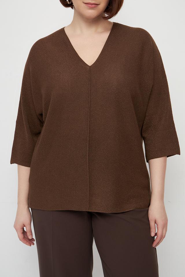 Коричневый пуловер Lecomte с V-образным вырезом и рукавами 3/4. Изготовлен из мягкой и приятной к телу вискозы с добавлением полиэстера, обеспечивающего форму и износостойкость. Стильный и комфортный выбор для создания повседневных образов. Состав: вискоза 80%, полиэстер 20%
