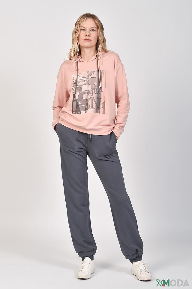 Передняя часть пуловера украшена оригинальным принтом в серых тонах, добавляющим образу индивидуальность. Свободный крой обеспечивает комфорт при движении, а сочетание хлопка, модала и эластана делает пуловер приятным к телу и устойчивым к деформации.