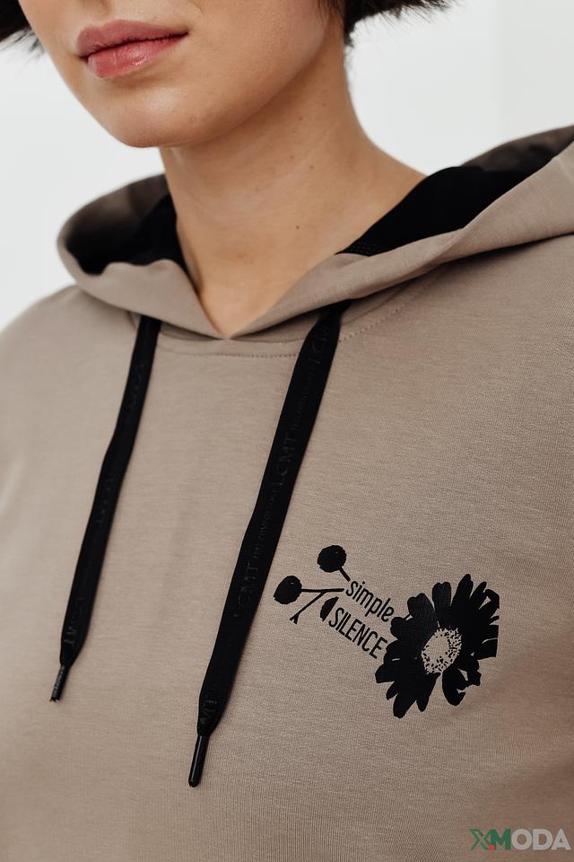 Толстовка имеет капюшон со шнурками для регулировки и удобные карманы. Состав ткани включает хлопок, модал и эластан, что обеспечивает мягкость, приятные тактильные ощущения и хорошую посадку по фигуре.