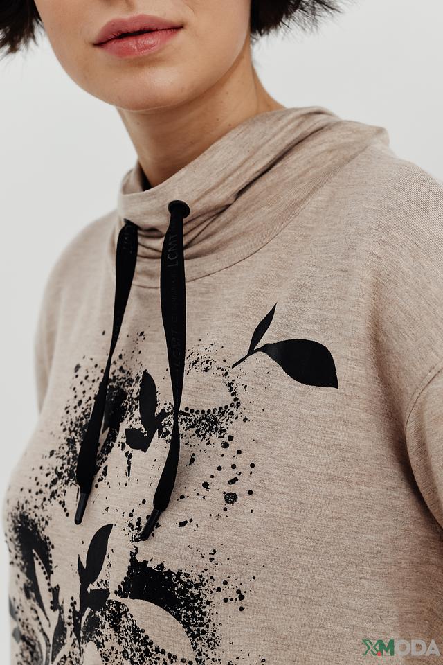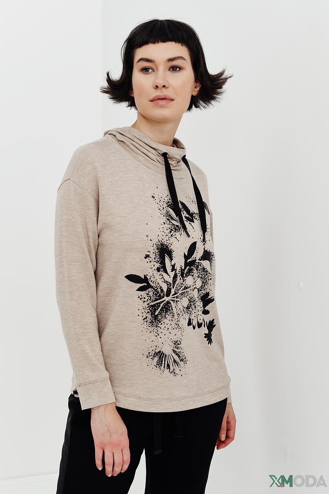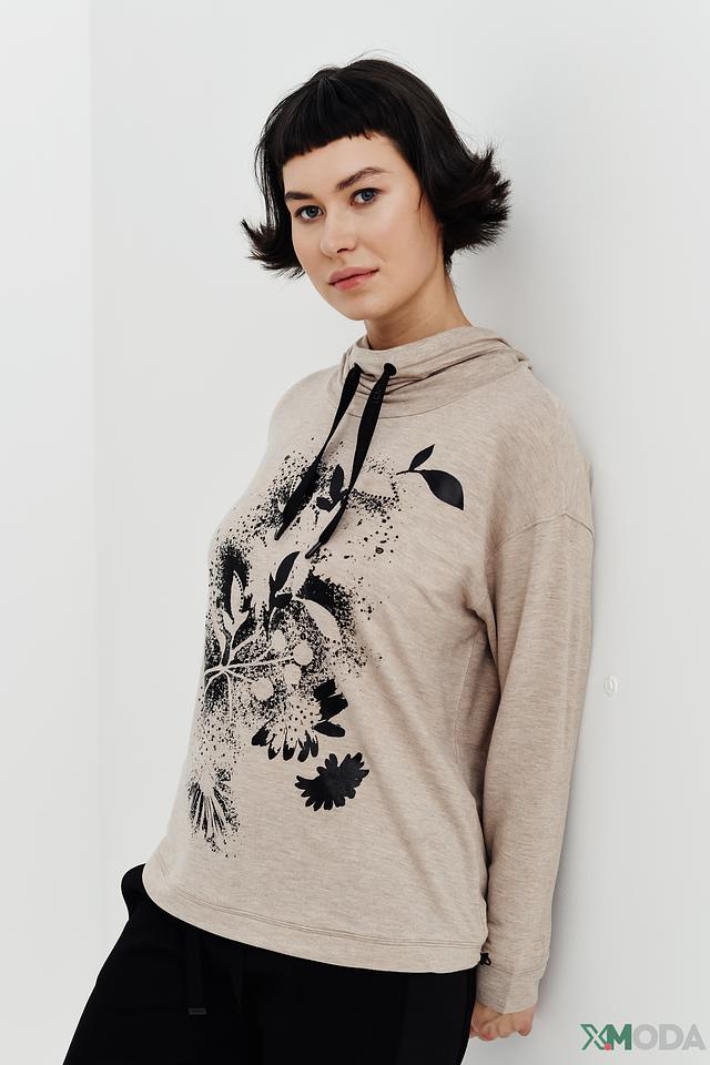 Женская футболка Lecomte бежевого цвета с оригинальным цветочным принтом и капюшоном. Изготовлена из мягкой вискозы с добавлением эластана для комфорта и свободы движений. Состав: вискоза 95%, эластан 5%