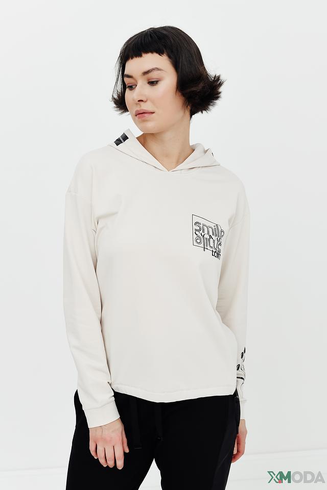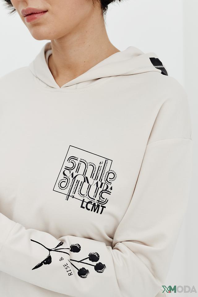 Бежевый пуловер Lecomte с капюшоном – это комфорт и стиль в одном изделии. Модель выполнена из мягкого трикотажа с добавлением хлопка и модала, имеет удобный капюшон и оригинальный принт с логотипом бренда на груди. Состав: хлопок 47%, модал 47%, эластан 6%