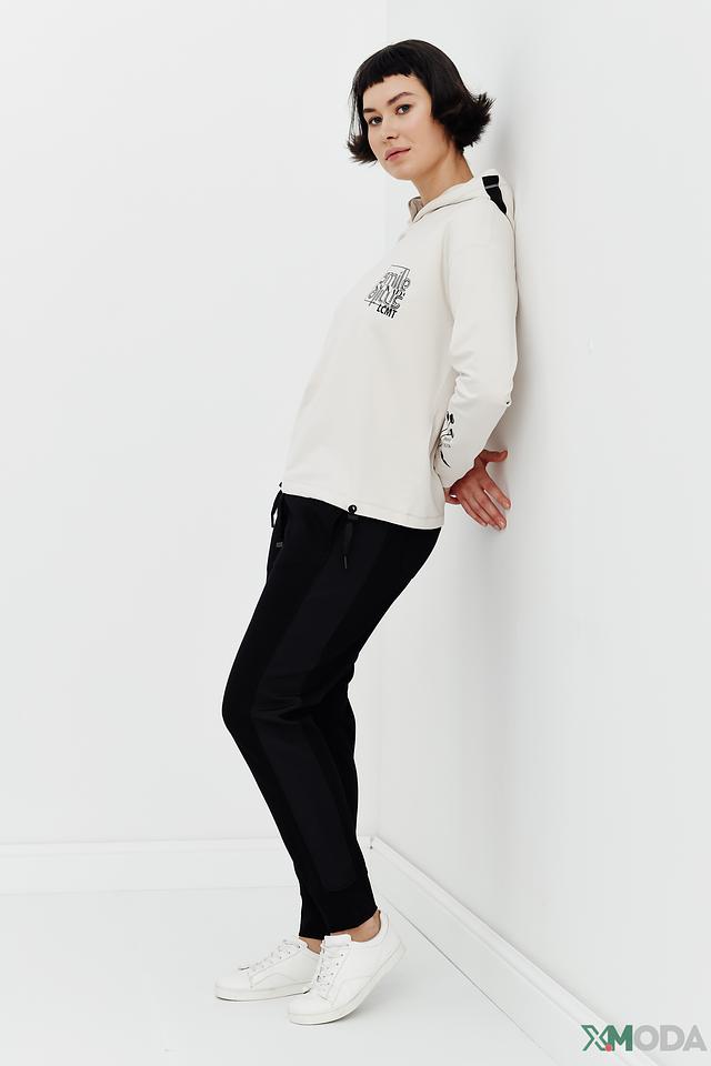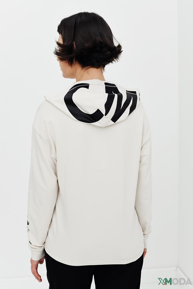 Пуловер имеет капюшон, который можно регулировать с помощью шнурков. На груди расположен оригинальный принт с логотипом бренда, а на спине – контрастный логотип. Свободный крой обеспечивает свободу движений, а длинные рукава согреют в прохладную погоду. Состав: хлопок 47%, модал 47%, эластан 6%.