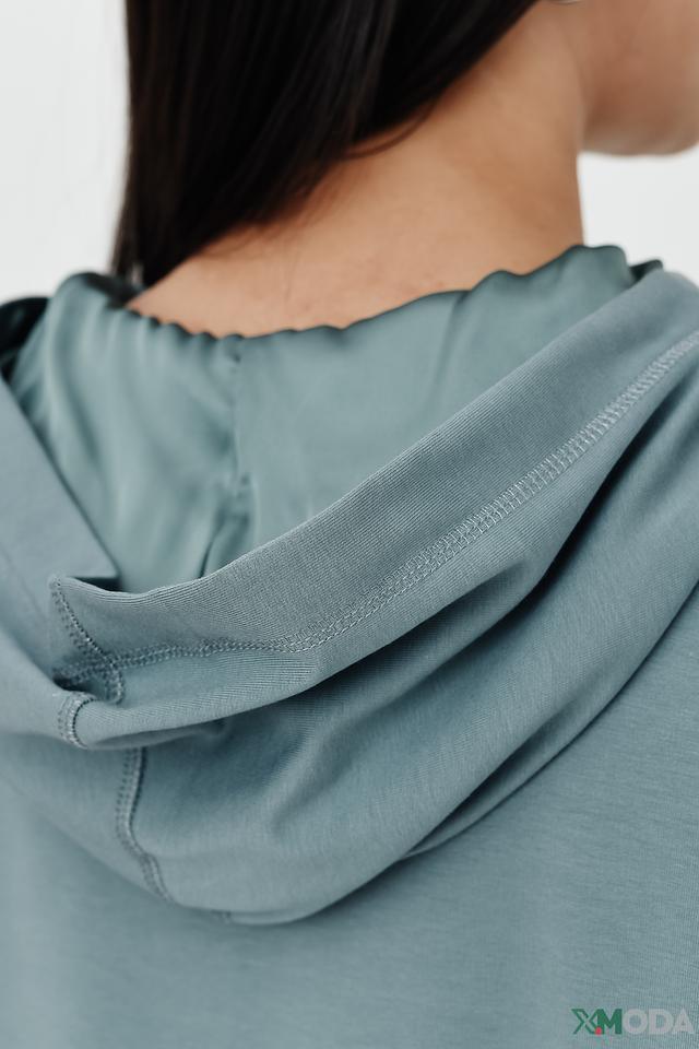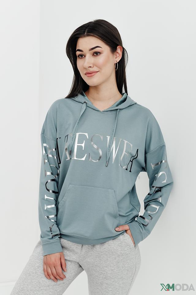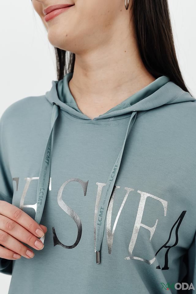 Мятный пуловер Lecomte с капюшоном и оригинальным дизайном. Модель выполнена из мягкого и приятного к телу сочетания хлопка и модала, декорирована надписью и логотипом бренда. Состав: хлопок 47%, модал 47%, эластан 6%