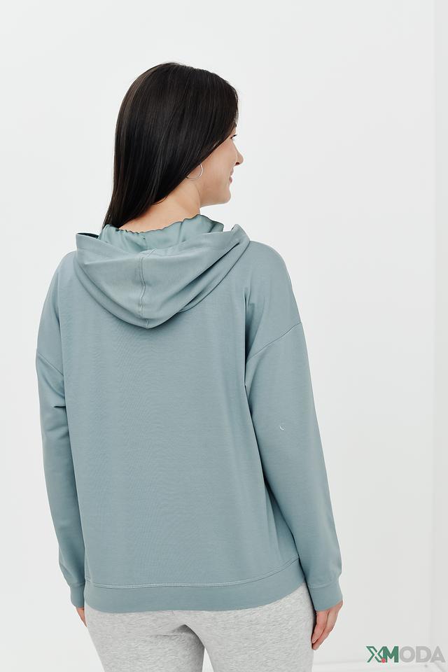 Модель имеет удобный капюшон и свободный крой, обеспечивающий комфорт в носке. Пуловер изготовлен из высококачественного сочетания хлопка (47%) и модала (47%) с добавлением эластана (6%), что делает его мягким, приятным к телу и хорошо сохраняющим форму.