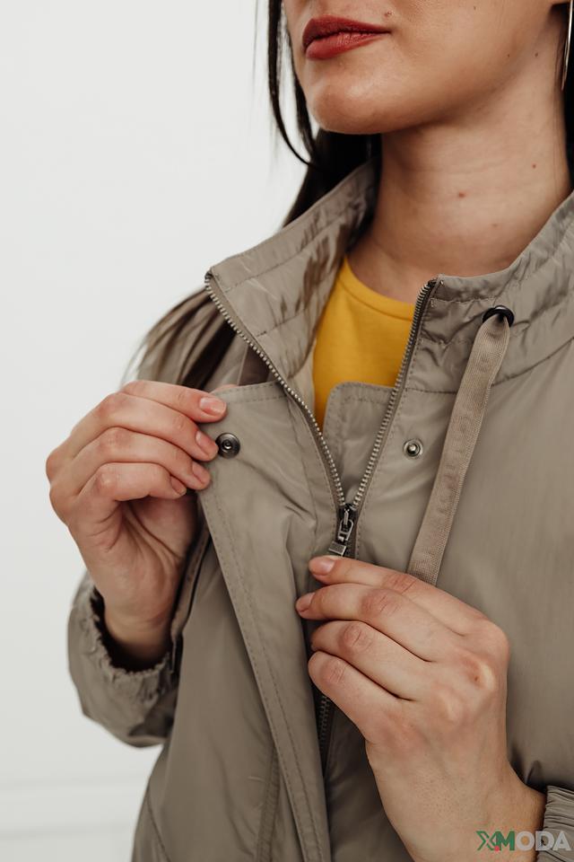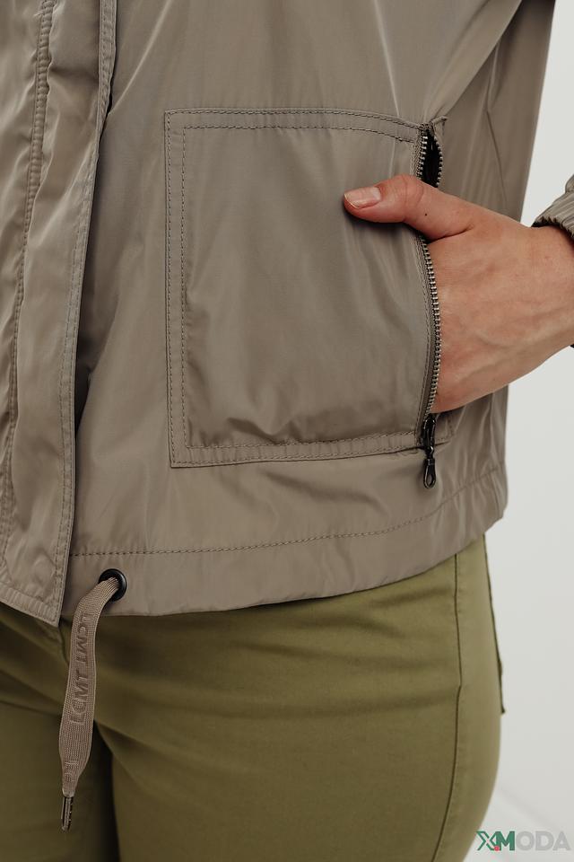 Куртка имеет прямой крой, воротник-стойку и капюшон со шнурком для регулировки. Застежка – молния. Боковые карманы обеспечивают удобство хранения мелочей.