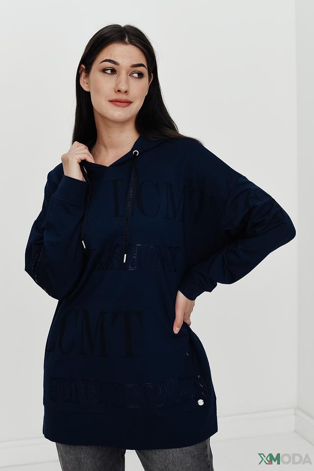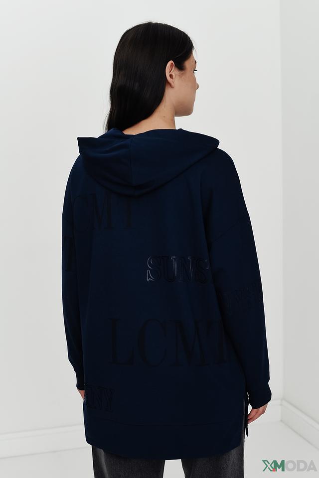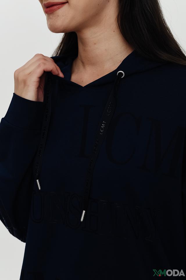 Синий пуловер Lecomte с капюшоном – это стильная и комфортная модель оверсайз кроя. Пуловер украшен крупным тиснением с логотипом бренда, а капюшон дополнен шнурками для регулировки. Идеальный выбор для создания повседневных образов. Состав: хлопок 47%, модал 47%, эластан 6%