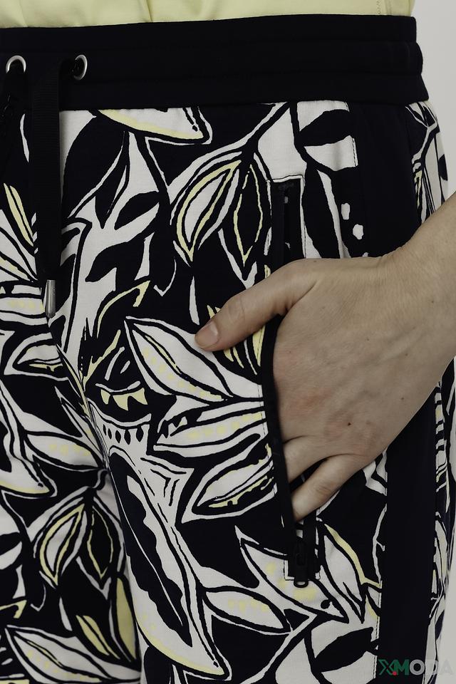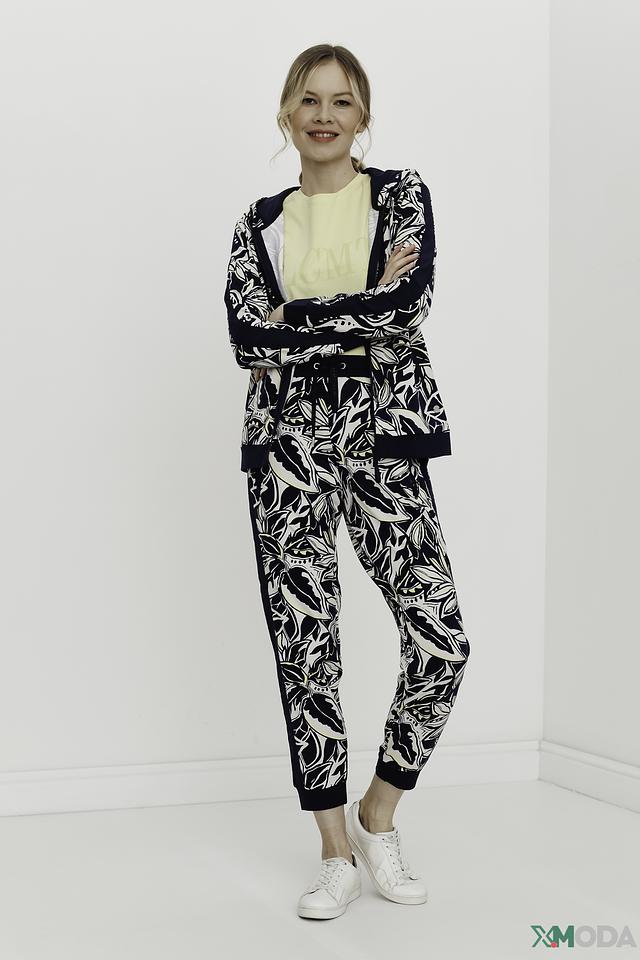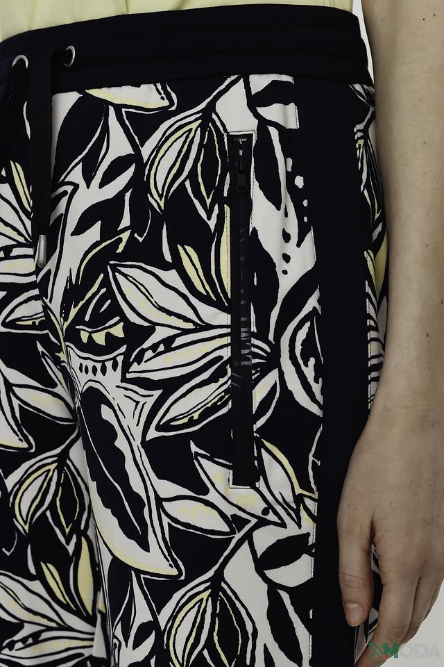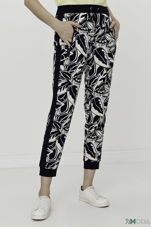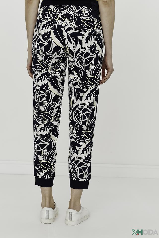Женские брюки Lecomte чёрного цвета с ярким тропическим принтом – стильное и комфортное решение для повседневного образа. Модель выполнена из мягкой ткани с добавлением эластана, обеспечивающего свободу движений. Состав: хлопок 47%, модал 47%, эластан 6%
