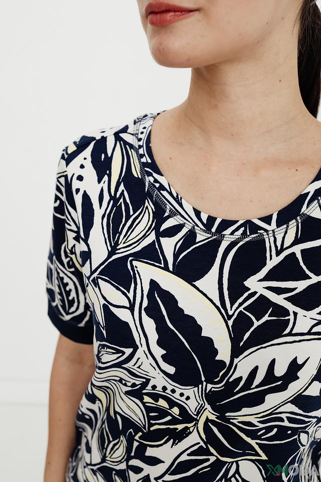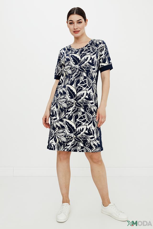 Платье Lecomte синего цвета с ярким цветочным принтом – отличный выбор для создания комфортного и стильного образа. Модель свободного кроя выполнена из мягкой ткани с добавлением хлопка и модала, обеспечивающей удобство в носке. Состав: хлопок 47%, модал 47%, эластан 6%