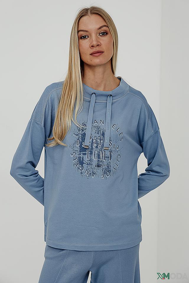 Голубой пуловер Lecomte с оригинальным принтом "Los Angeles" станет стильным дополнением к вашему гардеробу. Модель выполнена из мягкого и приятного к телу трикотажа с добавлением хлопка и модала, обеспечивающего комфорт в носке. Состав: хлопок 48%, модал 48%, эластан 4%
