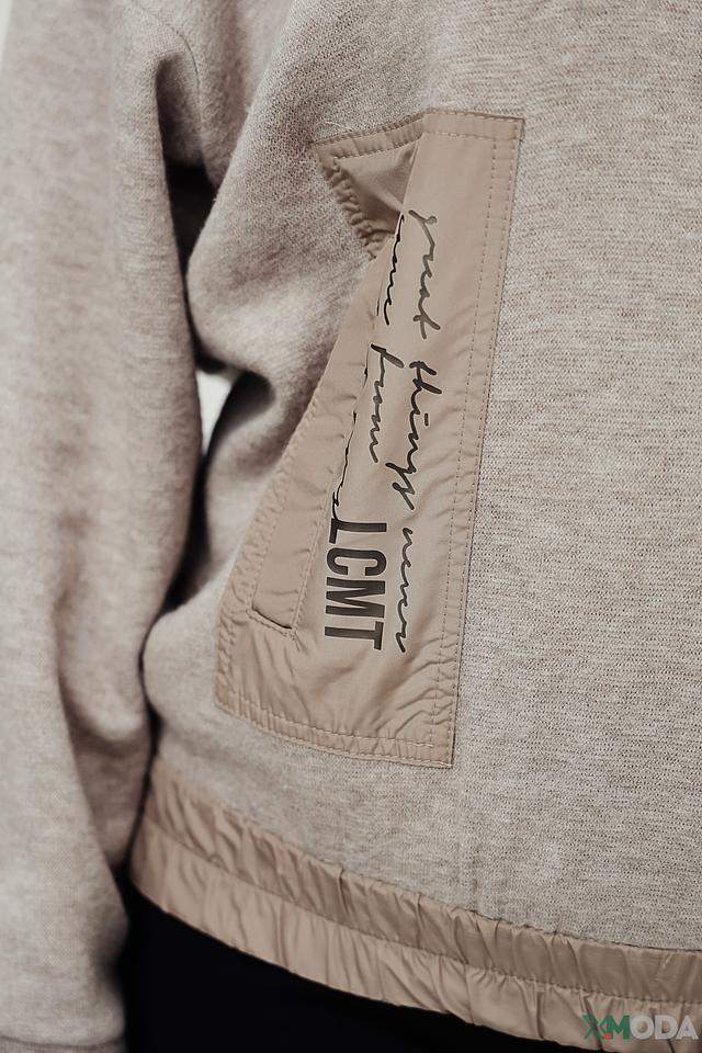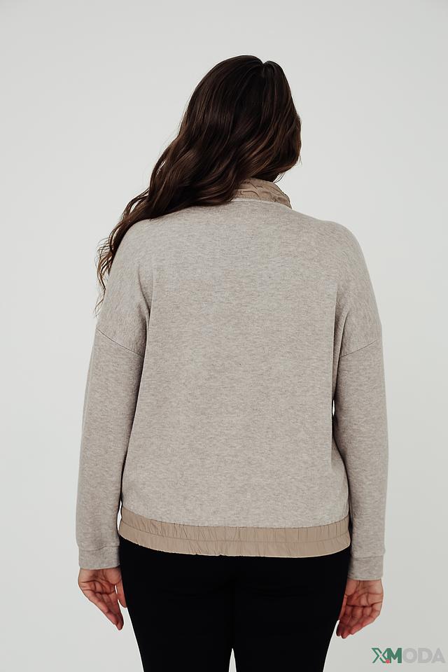 Пуловер украшен накладным карманом на груди и декоративными шнурками на воротнике, что придает ему оригинальный вид. Вырез горловины оформлен стойкой. Мягкий трикотаж приятен к телу и хорошо держит форму.