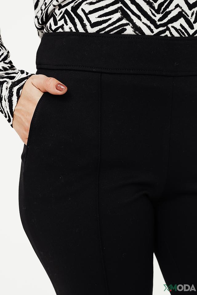 Брюки имеют прямой крой, который визуально вытягивает силуэт и обеспечивает комфорт при носке. Оригинальные разрезы в нижней части добавляют образу динамичности и современности. Эластичный пояс гарантирует идеальную посадку по фигуре, не сковывая движений.