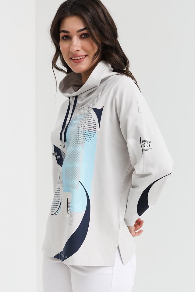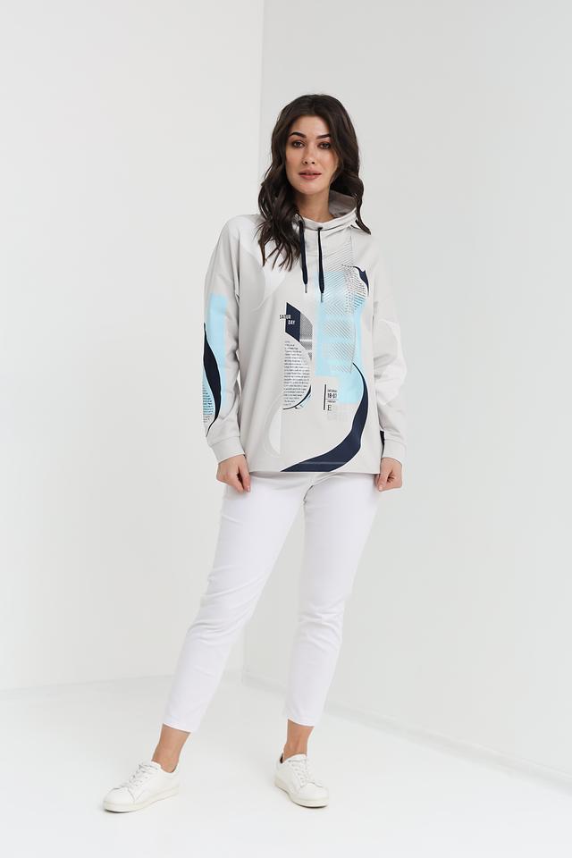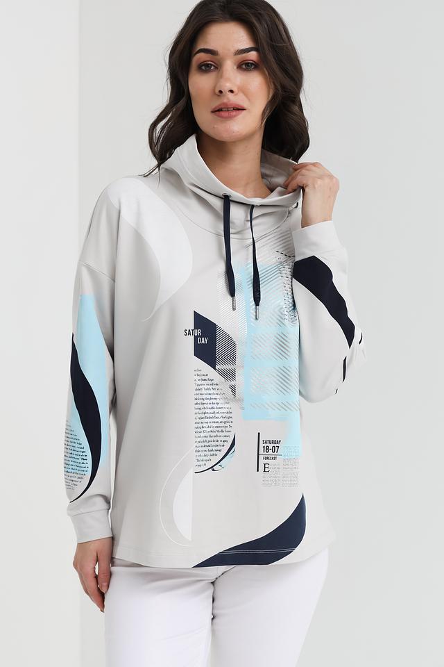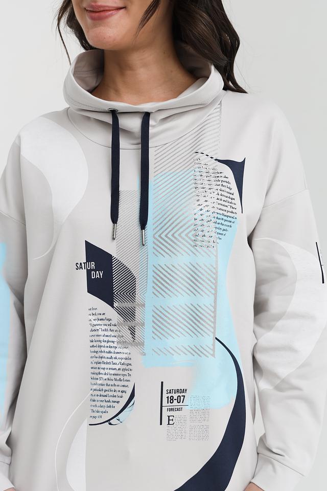 Стильная женская толстовка Lecomte светло-серого цвета с оригинальным графическим принтом. Модель выполнена из мягкого и приятного к телу материала, обеспечивающего комфорт в повседневной носке. Состав: хлопок 60%, вискоза 35%, эластан 5%