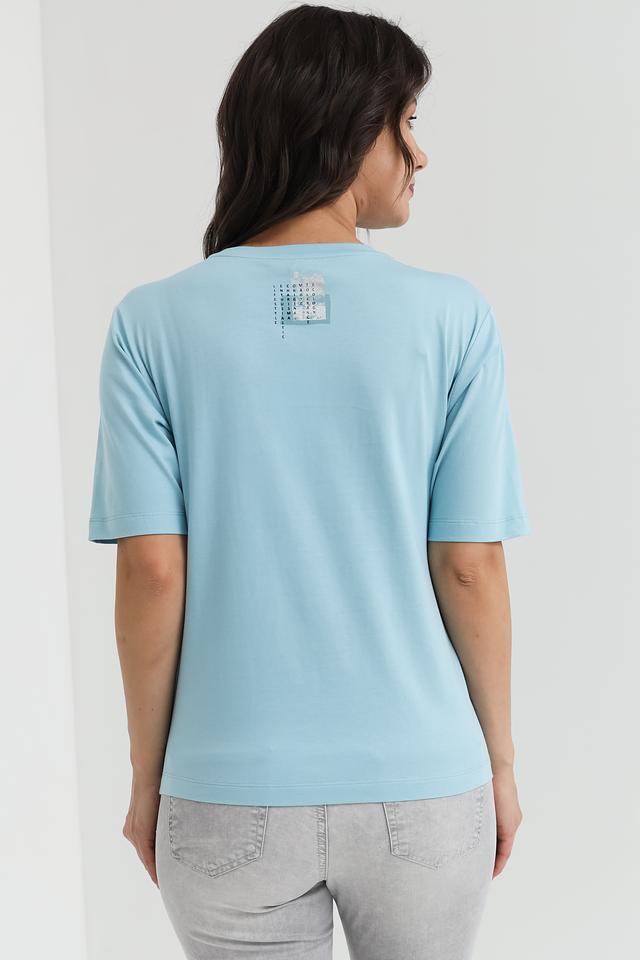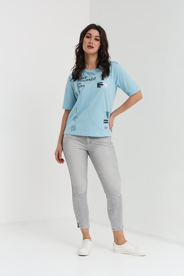 Женская футболка Lecomte голубого цвета с оригинальным принтом – стильное и комфортное решение для повседневного образа. Изготовлена из 100% хлопка, обеспечивающего приятные ощущения на коже. Состав: хлопок 100%