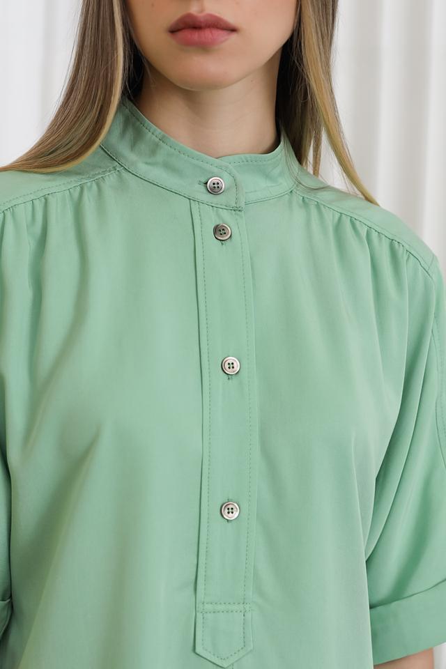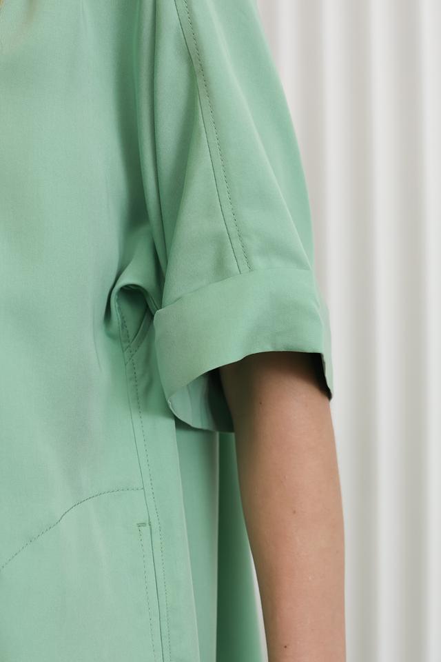 Мятное платье Lecomte из 100% лиоцела — это стильное и комфортное решение для летнего гардероба. Платье свободного кроя с короткими рукавами и оригинальным асимметричным подолом подчеркнет вашу индивидуальность. Состав: лиоцел 100%