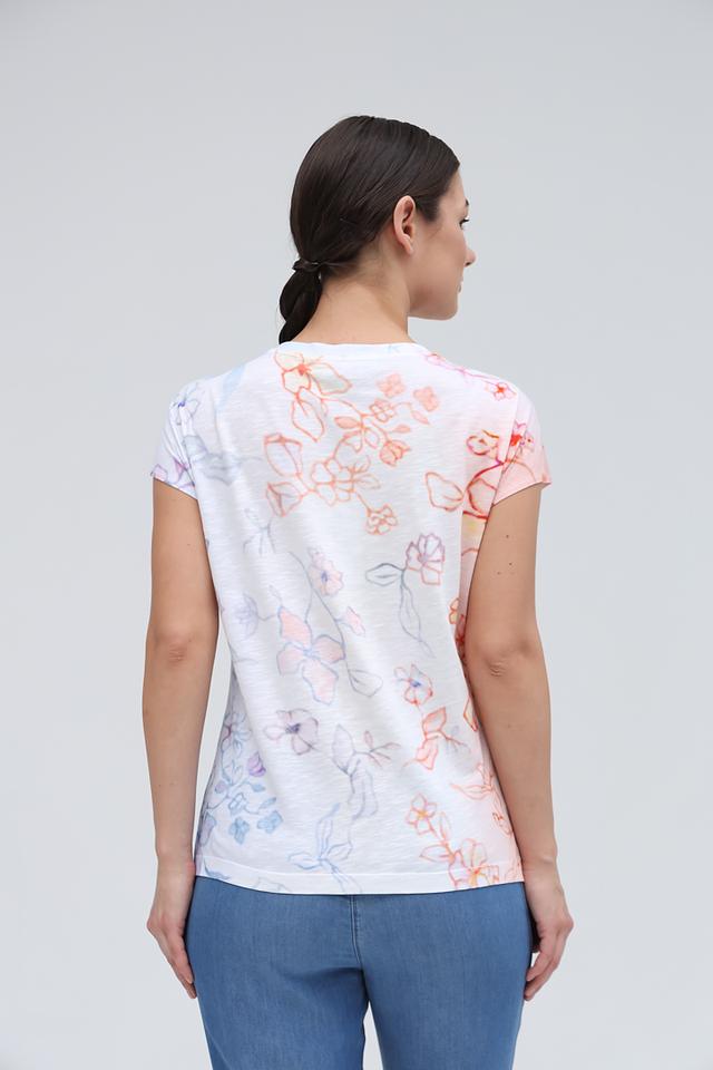 Эта футболка от Lecomte – идеальный выбор для создания легкого и стильного образа. Футболка выполнена в белом цвете и украшена деликатным цветочным принтом, выполненным в пастельных тонах.