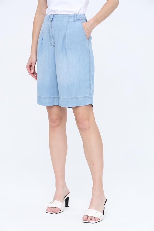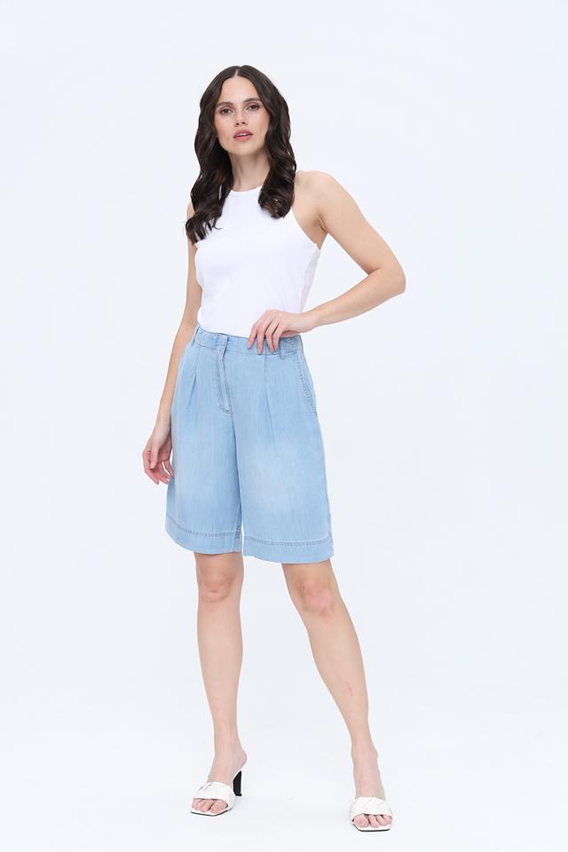 Голубой цвет шорт легко сочетается с различными элементами одежды, позволяя создавать разнообразные образы — от повседневных до более нарядных. Застежка на молнию и пуговицу обеспечивает надежную фиксацию. Шорты идеально подойдут для прогулок, встреч с друзьями или работы в жаркую погоду.
