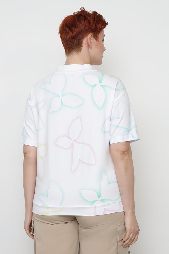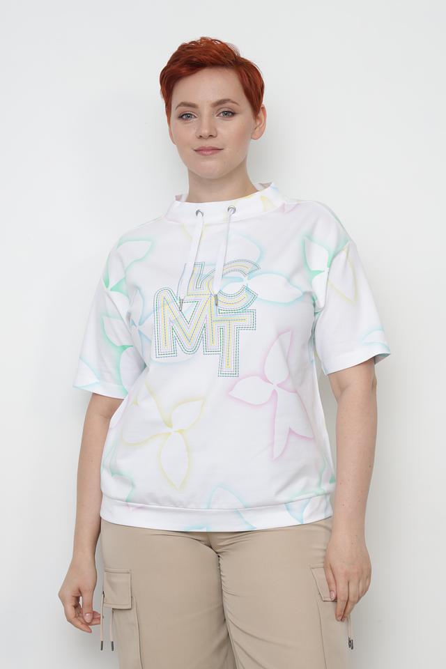 Белая футболка Lecomte с коротким рукавом и цветочным принтом станет отличным дополнением к вашему гардеробу. Модель выполнена из мягкого и приятного к телу трикотажа с добавлением вискозы и эластана. Состав: хлопок 60%, вискоза 35%, эластан 5%