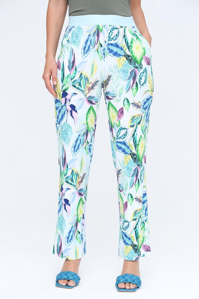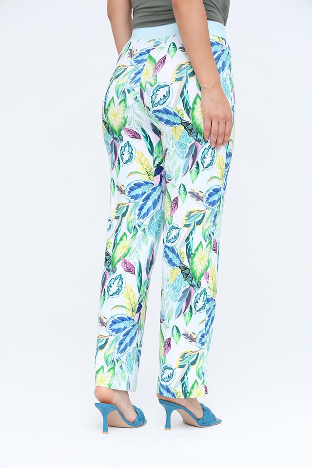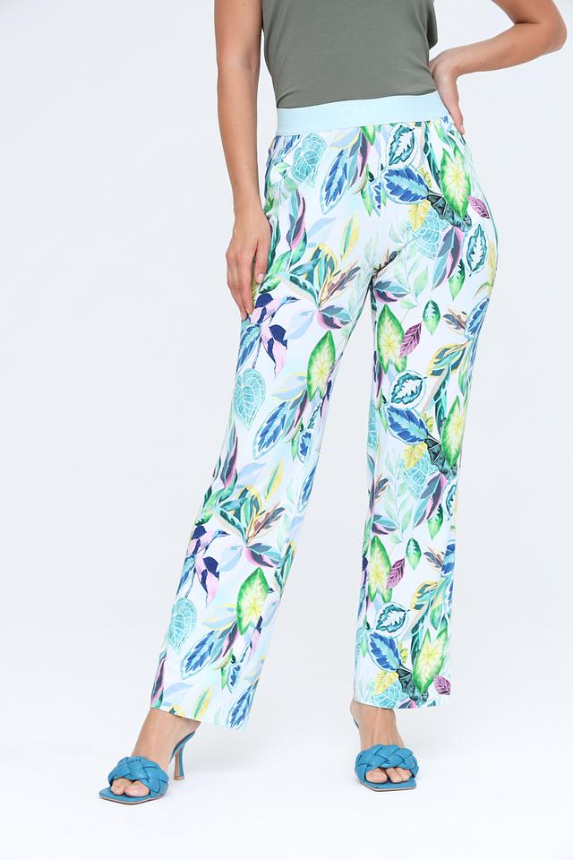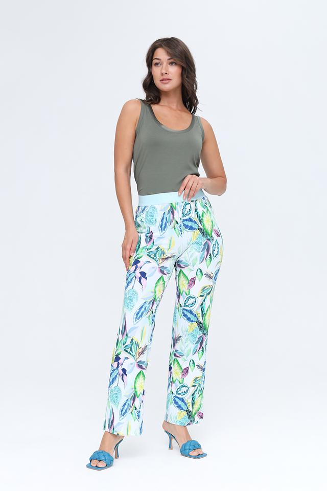 Женские брюки Lecomte светло-голубого цвета с ярким цветочным принтом станут отличным дополнением к вашему гардеробу. Модель выполнена из мягкой вискозы с добавлением эластана, обеспечивающего комфорт при носке и свободу движений. Состав: вискоза 96%, эластан 4%