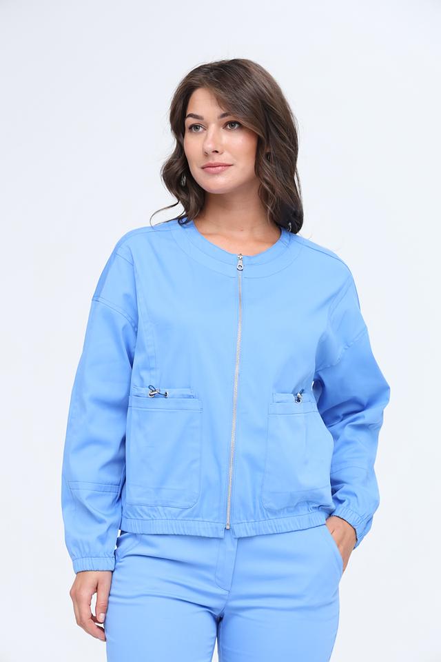 Голубой жакет Lecomte – это стильная и удобная модель на молнии. Жакет имеет приталенный силуэт, карманы с клапанами и эластичные манжеты, что обеспечивает комфортную посадку и свободу движений. Состав: хлопок 65%, полиамид 30%, эластан 5%