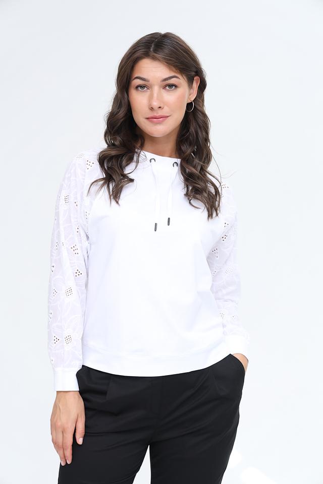 Белая блуза Lecomte с длинным рукавом и вышивкой — стильное и комфортное решение для создания повседневных образов. Модель выполнена из мягкой ткани с добавлением хлопка и модала, что обеспечивает приятные ощущения при носке. Состав: хлопок 47%, модал 47%, эластан 6%