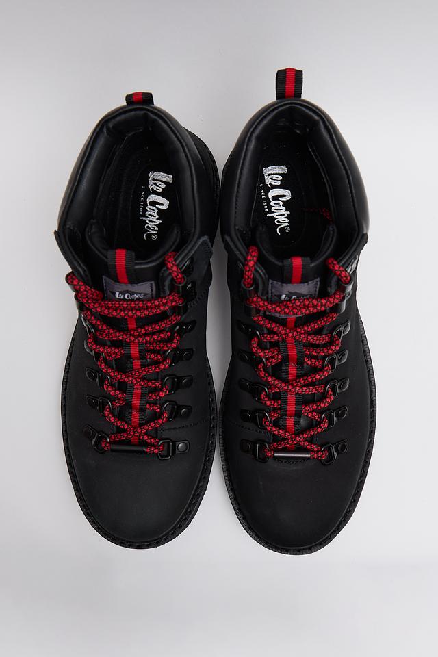 Мужские ботинки Lee Cooper чёрного цвета – это стильная и практичная обувь для повседневной носки. Модель выполнена из качественных материалов и оснащена шнуровкой для надежной фиксации. Яркие красные шнурки добавляют образу акцент. Состав: см. на вшивном ярлыке 0%
