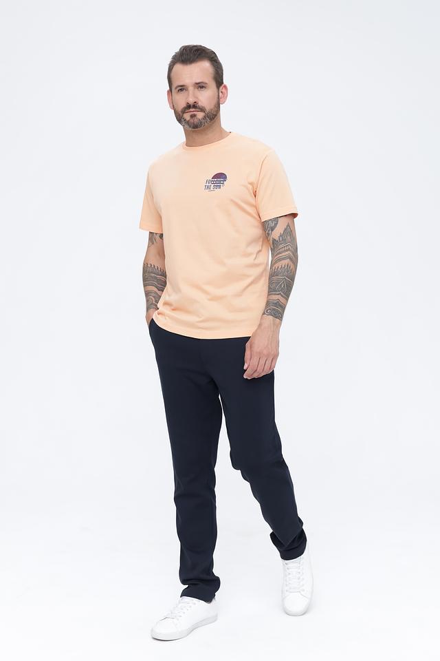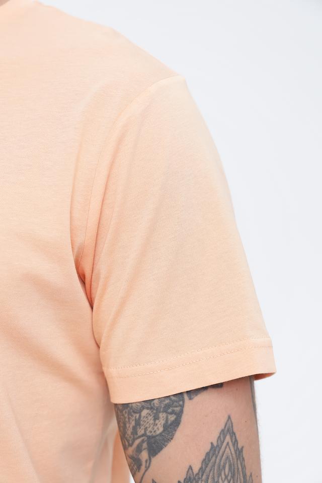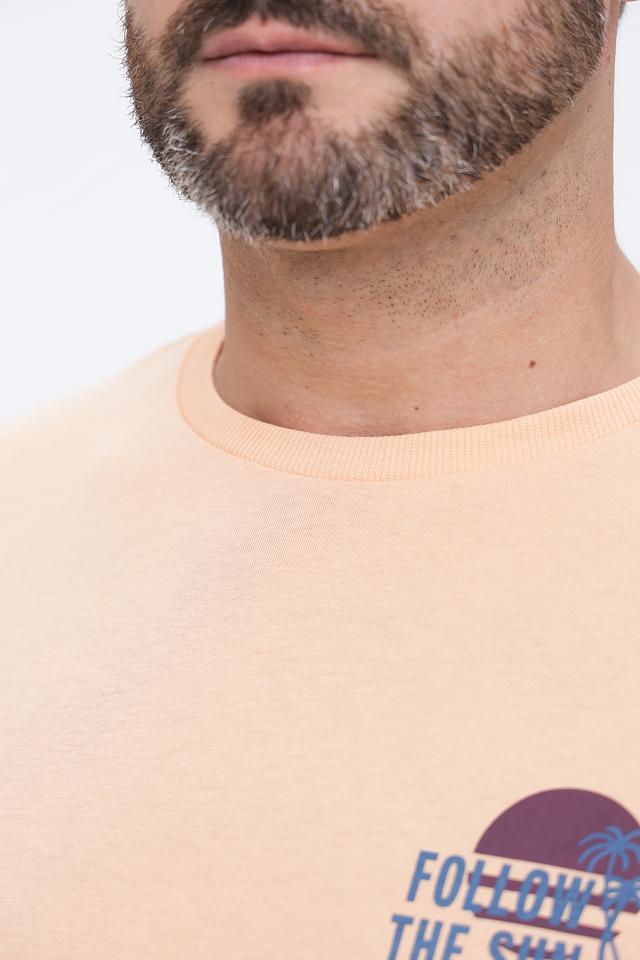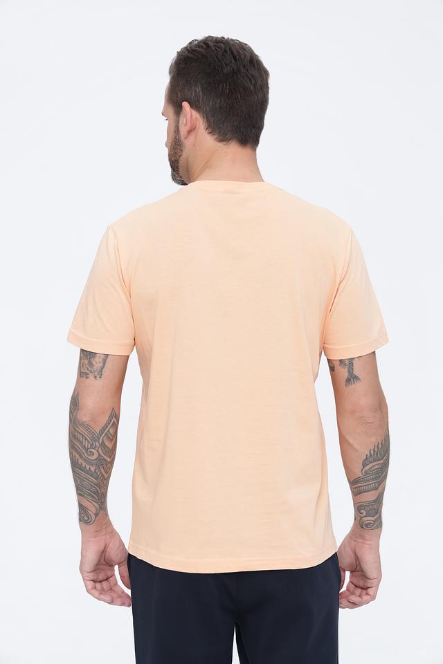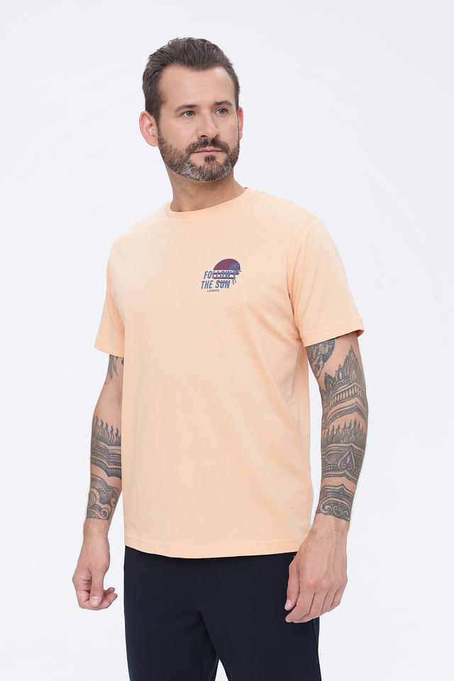 Мужская футболка Lerros персикового цвета с круглым вырезом и принтом на груди. Изготовлена из 100% хлопка, обеспечивающего комфорт и воздухопроницаемость. Состав: хлопок 100%