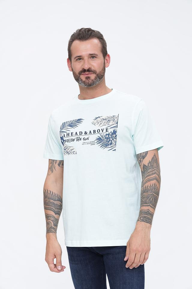 Мятная футболка Lerros с ярким принтом "Ahead & Above". Изготовлена из 100% хлопка, обеспечивая комфорт и воздухопроницаемость. Стильный дизайн с тематическим изображением сделает ваш образ запоминающимся. Состав: хлопок 100%