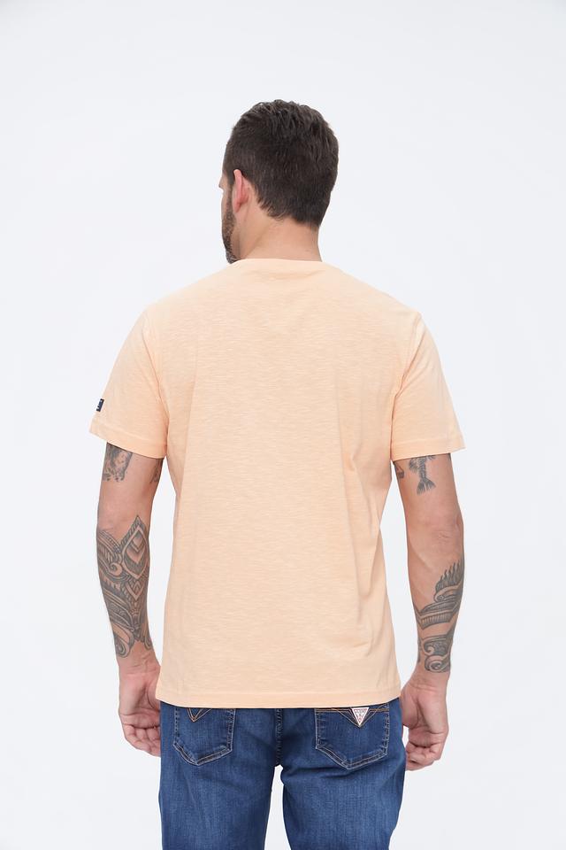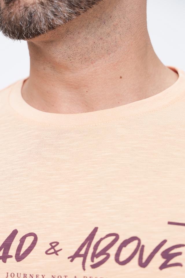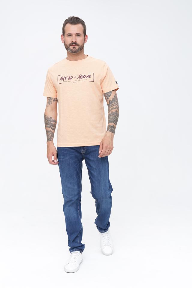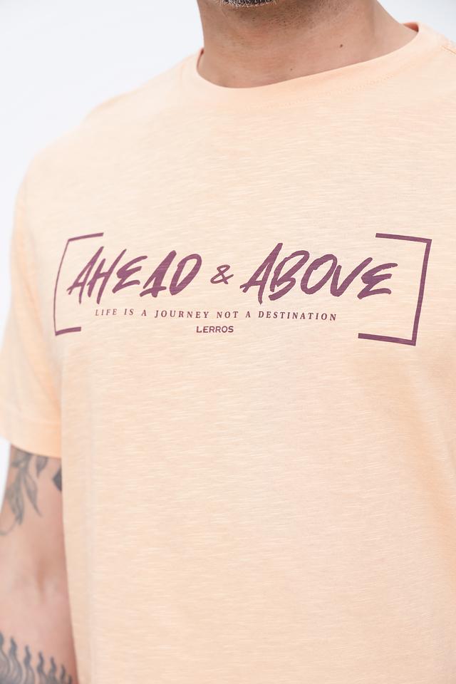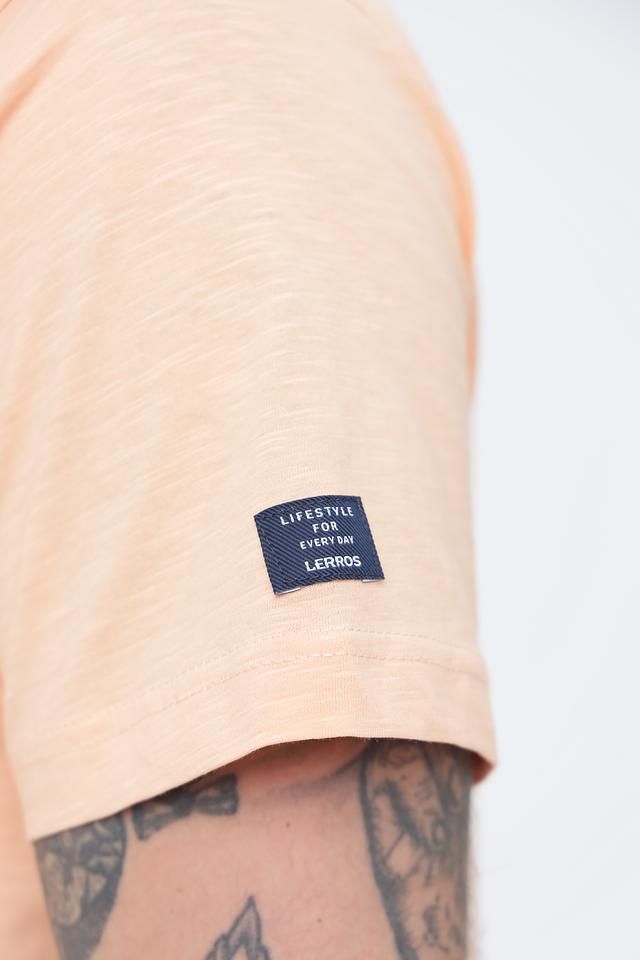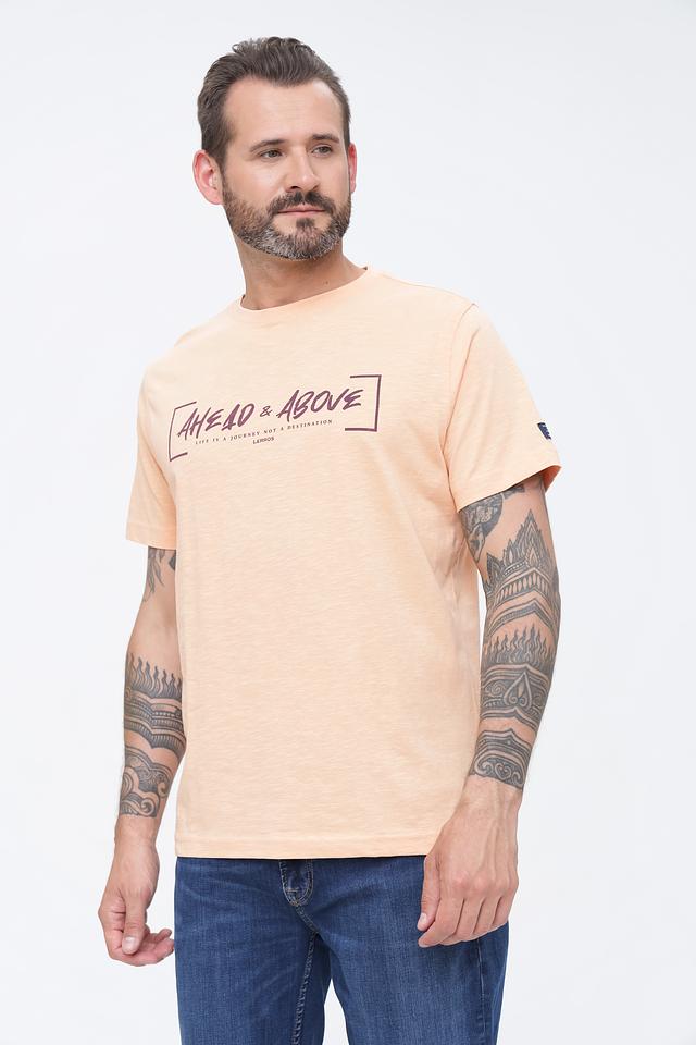 Мужская футболка Lerros персикового цвета с оригинальным принтом на груди. Изготовлена из 100% хлопка, обеспечивающего комфорт и воздухопроницаемость. Стильный и удобный вариант для повседневной носки. Состав: хлопок 100%