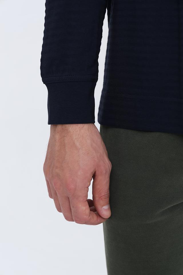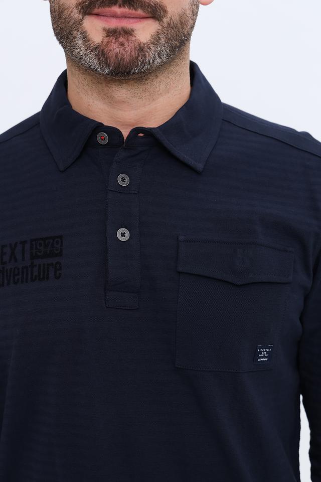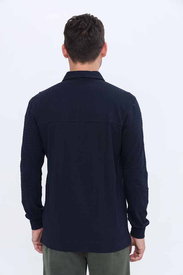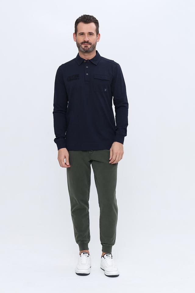 Темно-синий цвет делает эту модель универсальной и подходящей для различных образов. Длинный рукав делает поло актуальным в прохладную погоду. Нагрудный карман добавляет функциональности и оригинальности.