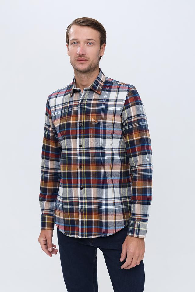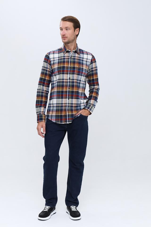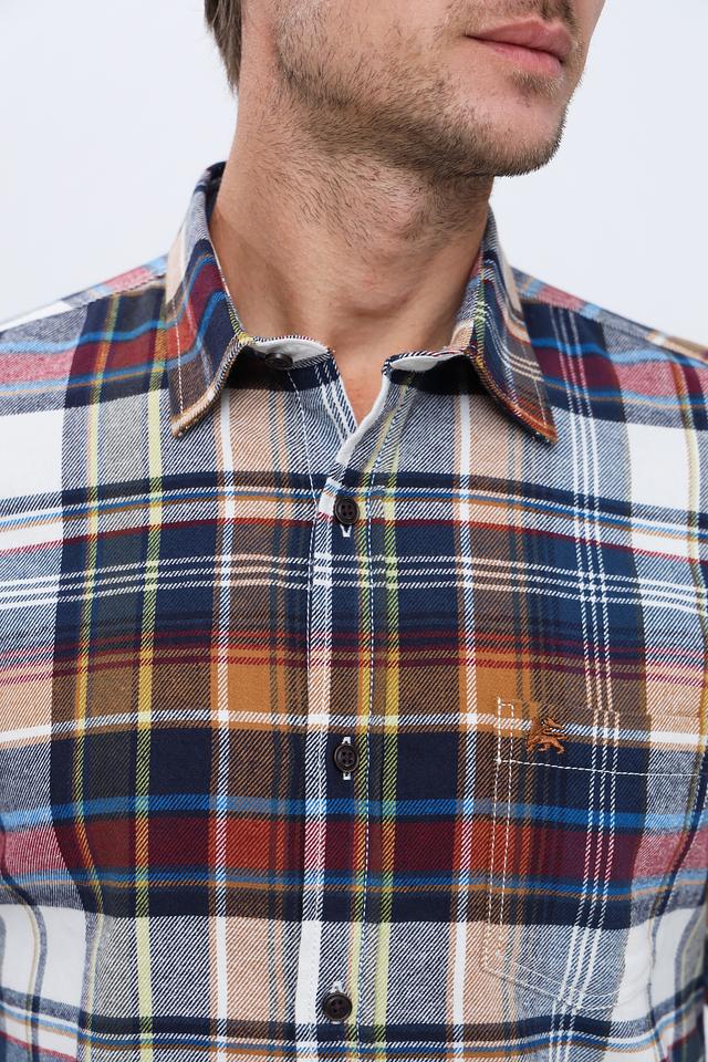 Мужская рубашка Lerros с длинным рукавом выполнена в классической клетке сине-коричневой гаммы. Изготовлена из 100% хлопка, обеспечивающего комфорт и воздухопроницаемость. Состав: хлопок 100%